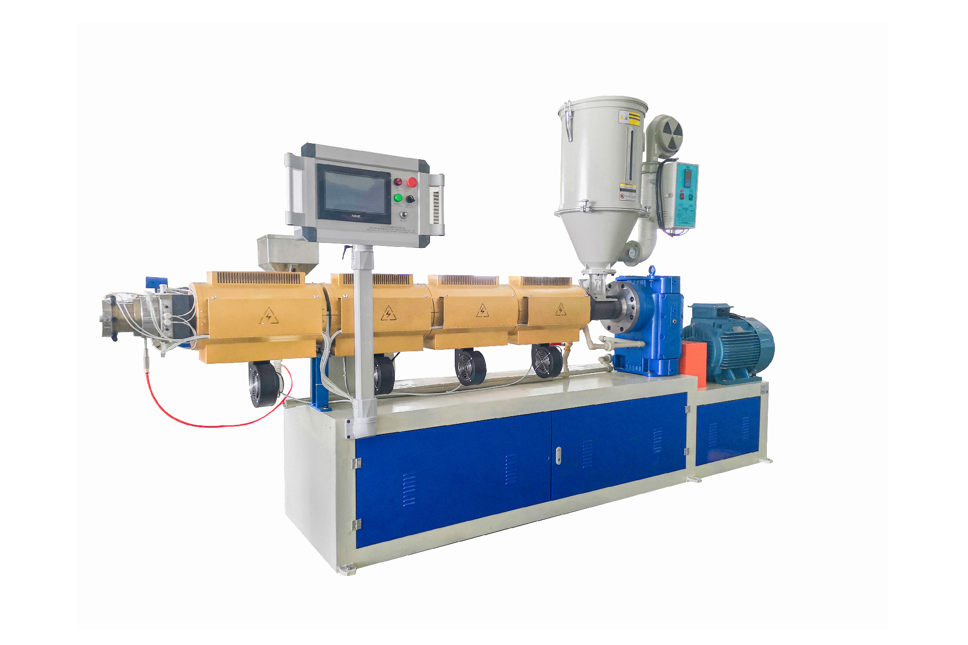 ML12-50 PLA雙色吸管擠出機組由:PLA擠出機、機頭、冷卻定型裝置、牽引切割裝置、理管輸送裝置(選配)等部分組成,可實現(xiàn):單色擠出,雙色共擠。采用全新BM分離型參數(shù)設(shè)計的PLA專用50MM直徑螺桿:長徑比33:1,采用146型硬齒面齒輪箱,18.5KW高效節(jié)能同步伺服電機,塑化效果好,擠出量大,出膠穩(wěn)定;是生產(chǎn)PLA材料飲料吸管的專業(yè)設(shè)備。也可以滿足普通PP料吸管的生產(chǎn)。
